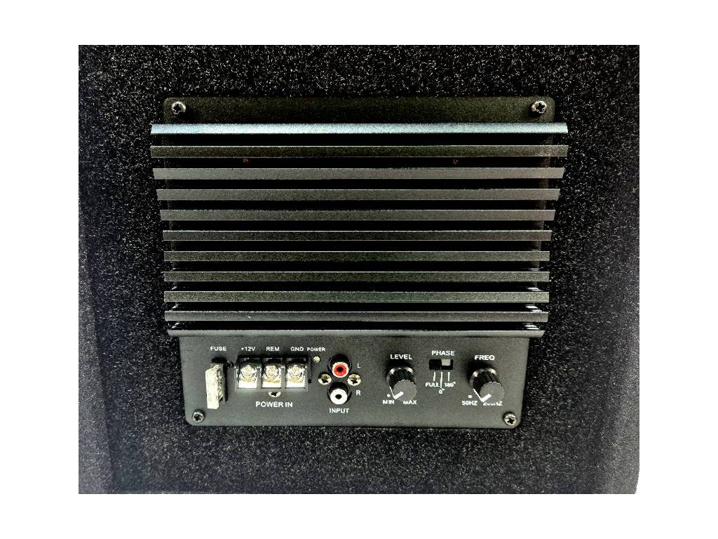 Jednoduchá montáž! Stačí natahnout kabely od baterky a rádia k subwoferu. Jako vstup je možné použít RCA výstup z autorádia, nebo přes konektor jack připojit jakýkoli jiný vstup (např. MP3...). Subwofer je třeba připojit k autobaterii nebo je možné použít externí adaptér 12V DC (není součástí). Samozřejmě si můžete nastavovat, jakou úrovní basů má subwoofer hrát. Na zesilovači je potenciometr, kterým můžete nastavit také maximální výkon, který je užasných 600W.