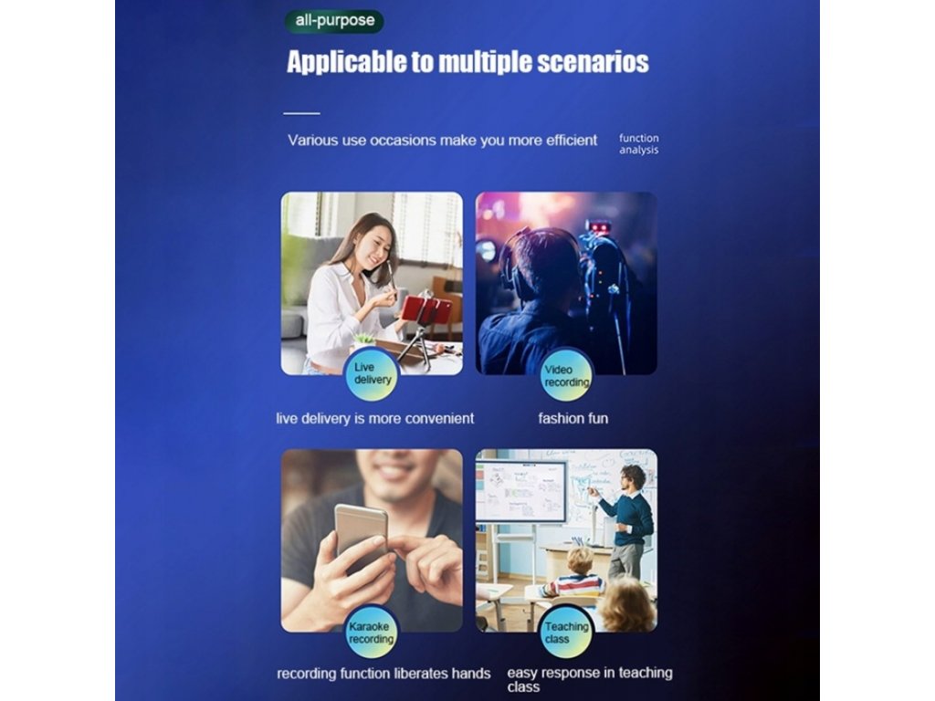 Je vhodný pro nahrávání videa, jako jsou např. krátká videa vlog, živé komentáře na TikTok, YouTube a Facebook, rozhovory atd..