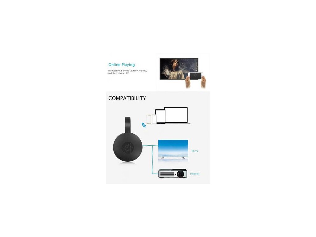Po připojení zařízení do televize, jednoduše můžete přehrávat obsah z telefonu Do televize připojíte pomocí HDMI Zařízení pak ovládáte ze svého telefonu, když je obojí napojené na stejnou wifi Snadno lze přehrávat Youtube, Netflix, Google Play Music, Google Play Movies a další Vhodné jak pro Android, tak i iOS, Mac, Windows HD video streaming z cloudového úložiště 1080P 2.4 Wifi s adaptivní anténou Systém zrcadlení z Androidu i notebooku