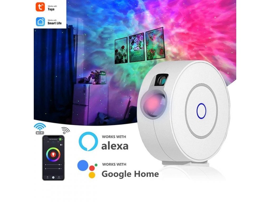 Funguje s Amazon Alexa a Google Home. Lze jej ovládat také na dálku pomocí vlastní aplikace. Párování projektoru s aplikací Smart Life je otázkou jednotek minut. Vychytávka nastavení scenérií pomocí tlačítka “Scene”. Zde si nastavíte, jaké barvy se mají na obloze střídat, v jaké frekvenci a animaci přechodů. Tento hvězdný projektor dokáže zobrazit jak hvězdy, tak i mlhovinové mraky v různých nastaveních. Mohou být statické nebo pohyblivé, rychlé nebo pomalé.