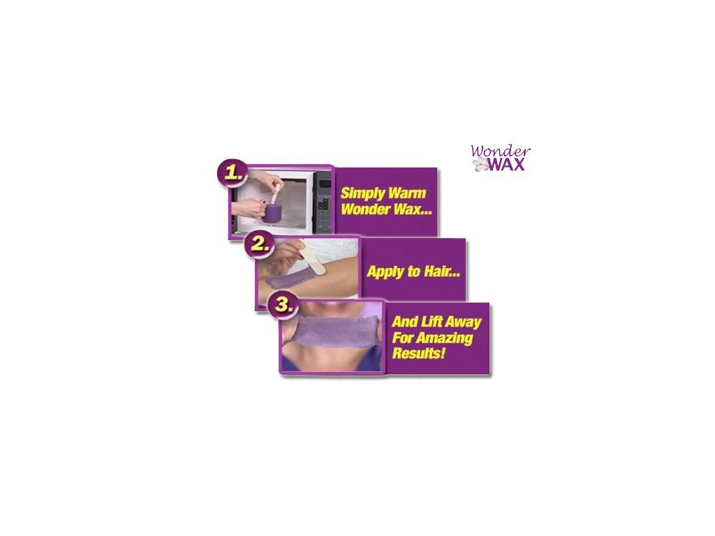Obsah balení: 3x velký aplikátor, 3x malý aplikátor, 141 g vosku Wonder Wax v nádobce, zklidňující ubrousky, návod