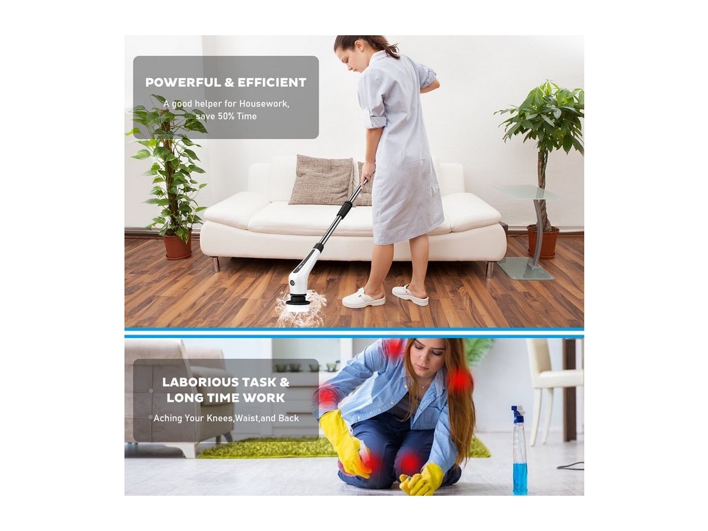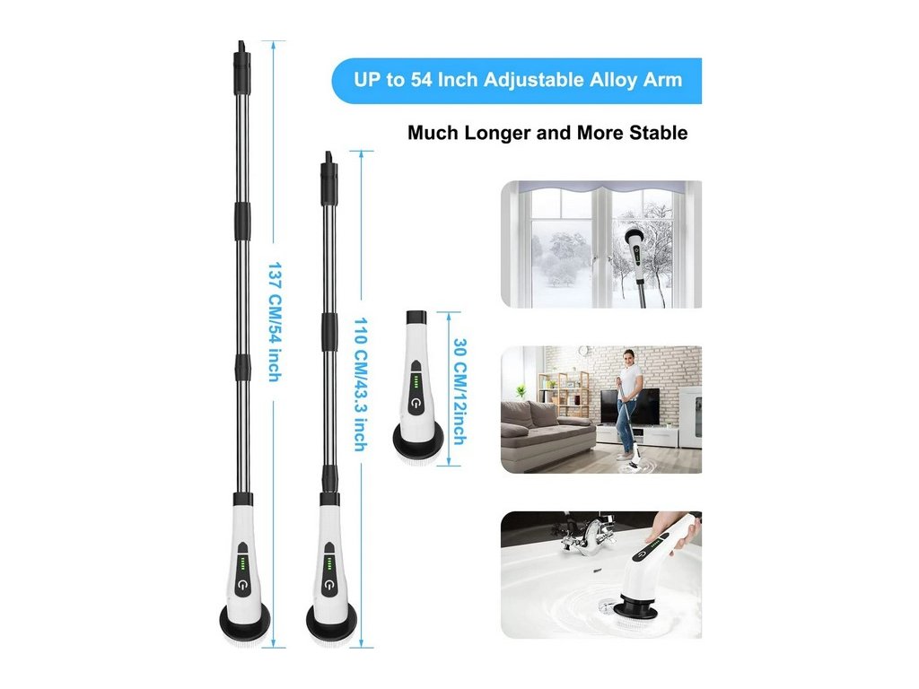Řešení pro neefektivní čištění: Tento elektrický kartáč je vybaven nastavitelnou rukojetí, která se prodlužuje od 43 do 54 palců, takže můžete nastavit délku kartáče tak, aby se hodil do různých oblastí vaší domácnosti. Bez námahy dosáhne na stěny a stropy v koupelnách a lze jej použít i jako kartáč s krátkou rukojetí, stačí jednoduše odejmout výsuvnou rukojeť. Dokonalý pomocník při úklidu: Tento elektrický WC kartáč vytváří silnou sílu k odstranění nečistot, čímž šetří váš čas a námahu při úklidu a ulehčuje vašim rukám i vaší domácnosti. Osvobodí vás od zdlouhavých úkonů, šetří vaše záda a kolena a zefektivní a zpříjemní úklid vaší domácnosti