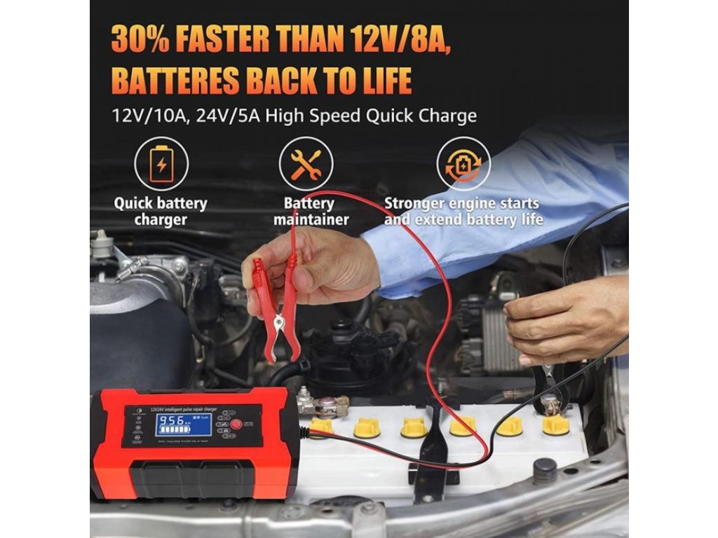 Inteligentní automatická rychlo-nabíječka baterií 12-24V 10A pro automobily