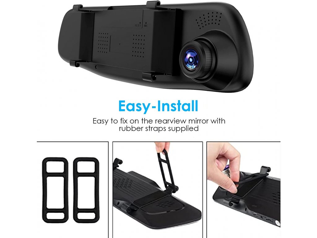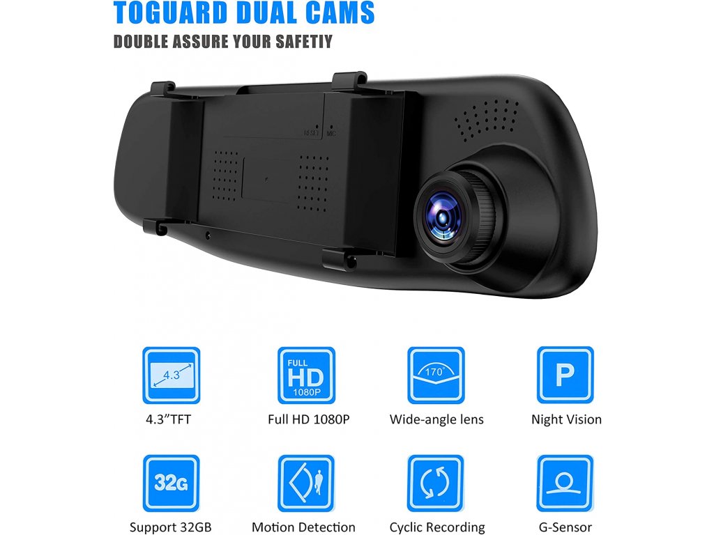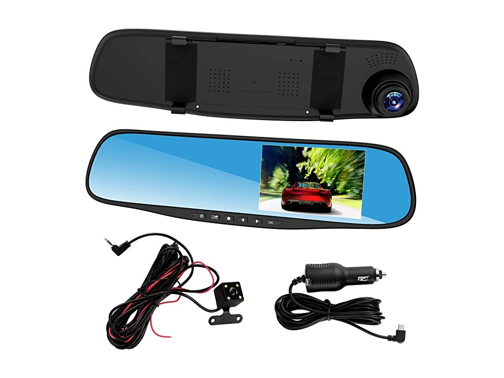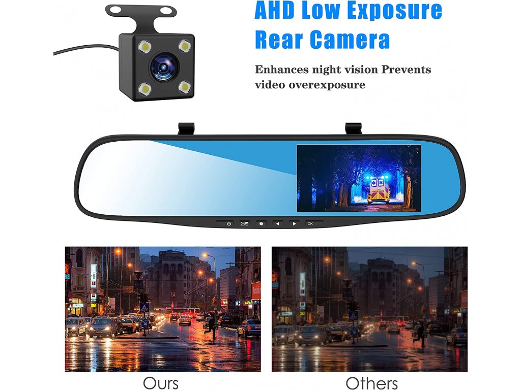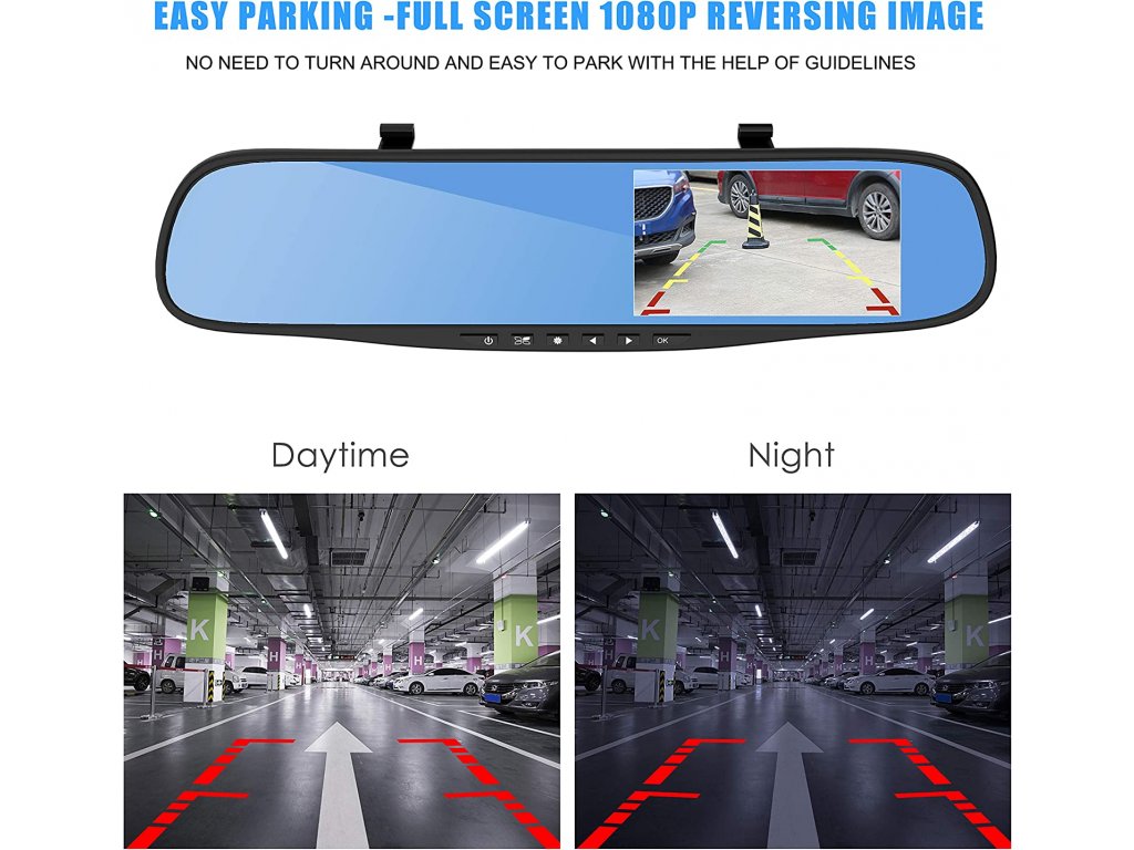 Kamera ve zpětném zrcátku + přídavná kamera + 5m dlouhý kabel - instalace této Autokamera ve zpětném zrcátku je poměrně jednoduchá stačí když ji připevníte pomocí svorek na Vaše původní zpětné zrcátko. 1/3 části zrcadla tvoří barevný 4,3 "TFT LCD monitor. kamera s širokoúhlým objektivem 170 ° zaznamenává video se zvukem v HD 1080p rozlišení. Druhou kameru můžete upevnit k zadní SPZ, nebo do interiéru auta, pro sledování řidiče, příp. pasažérů.