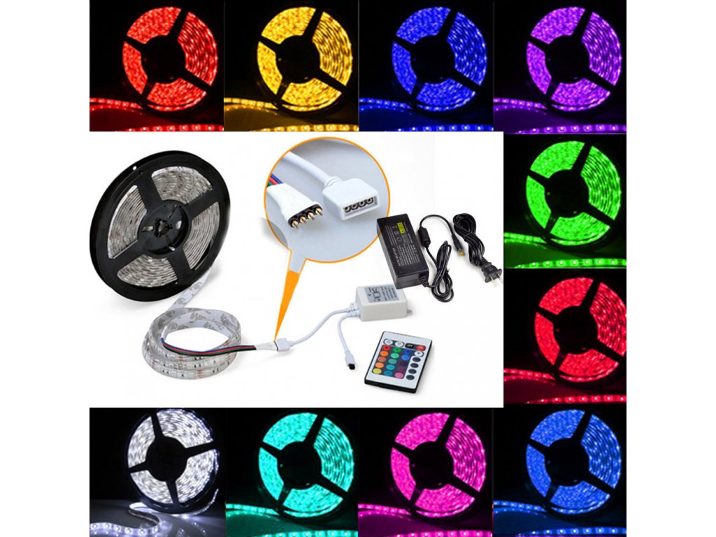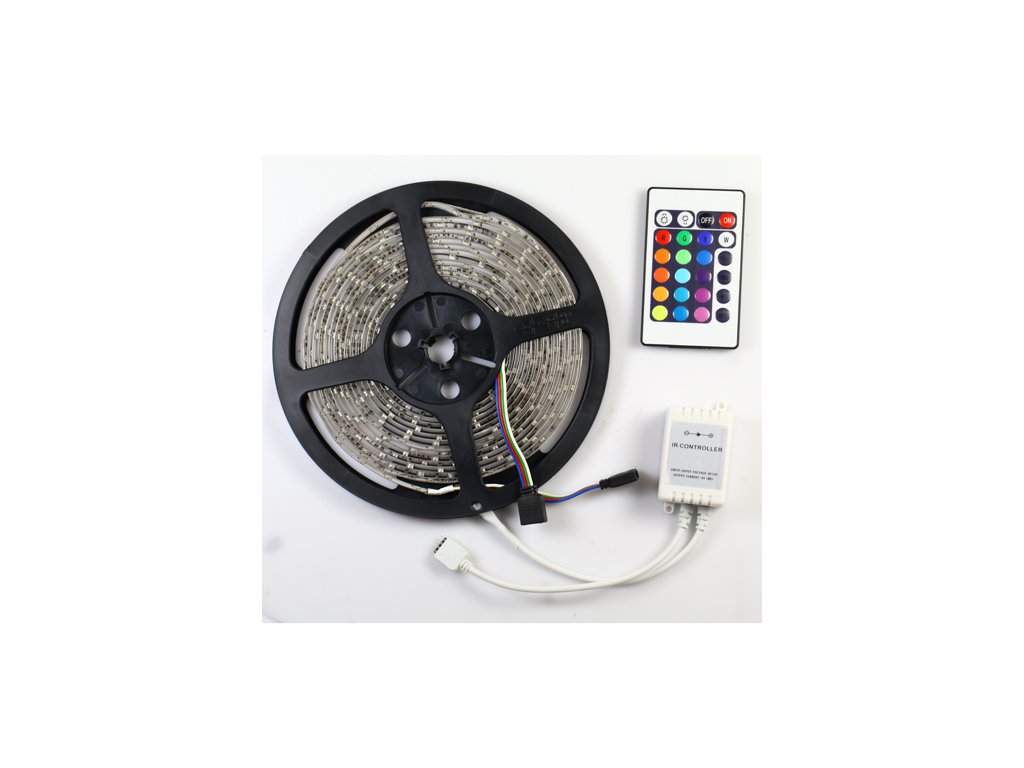 LED PÁSEK 5m barevný voděodolný + Dálkový IR ovladač + Napájecí zdroj pro LED pásky 24W / 12V DC / 2A