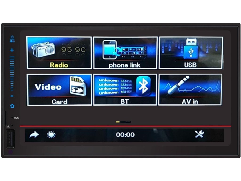Moderní 2DIN autorádio, s velkým, 7'' dotykovým LCD displejem, předním vstupem na USB, microSD karty a také AUX vstupem.