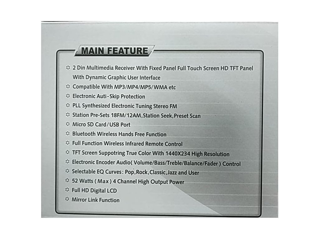 - Dotyková obrazovka 7'' s rozlišením 800*480 a možností přehrávat filmy a funkcí zrcadlení mobilního telefonu ( například pro zobrazení navigace z mobilního telefonu na monitoru rádia )
