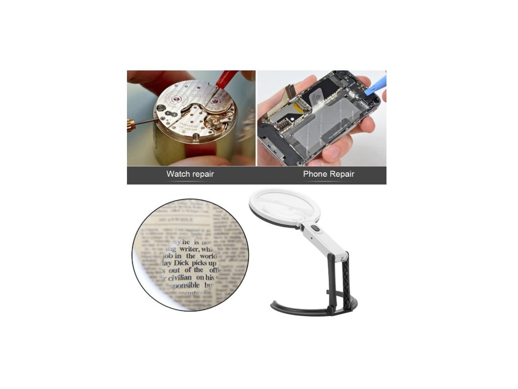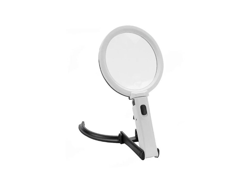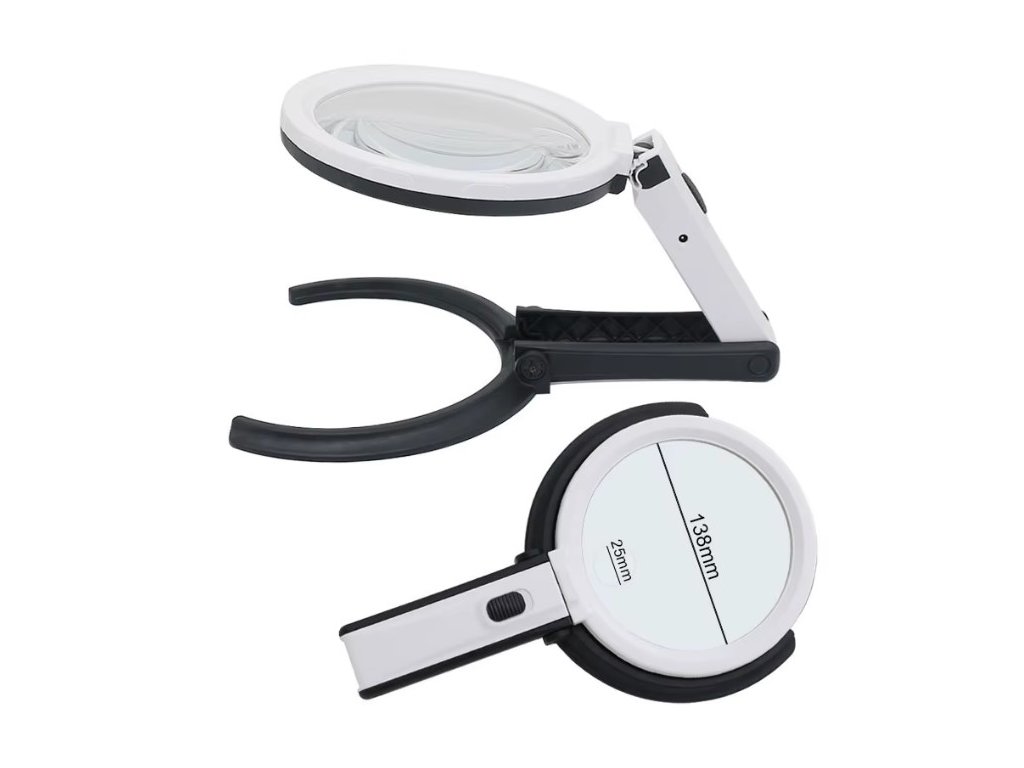Skládací stolní a ruční lupa s osvětlením, 12 LED