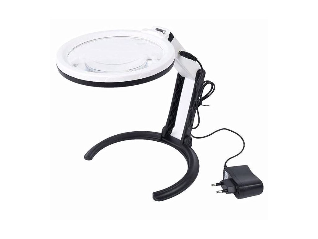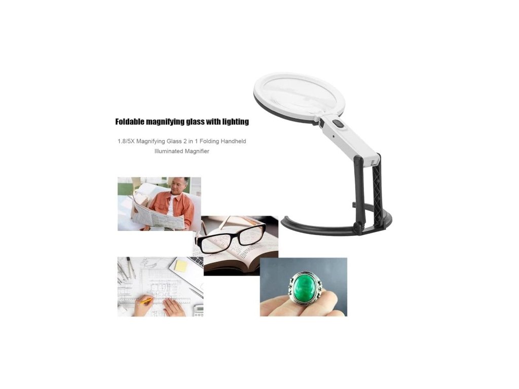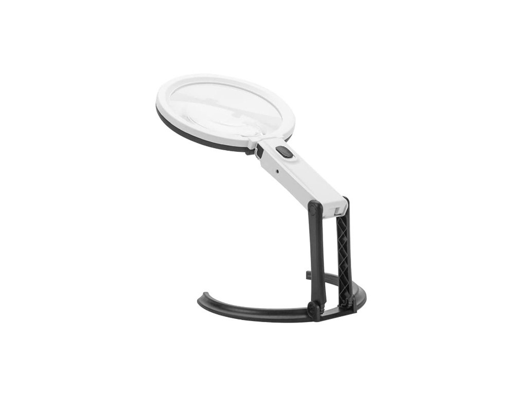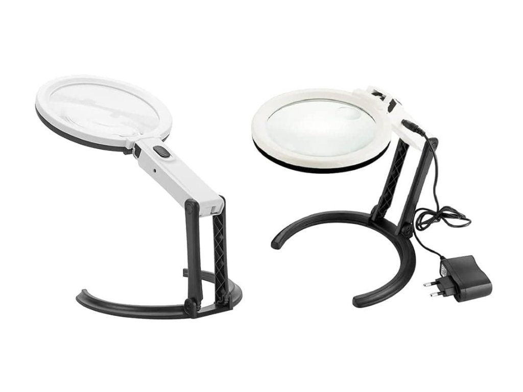 Osvětlená stolní lupa s bifokální čočkou o síle 1,8x zvětšení a 5x. Lupu lze používat ve složeném stavu jako lupu do ruky. Rozložení stojánku pak dostanete velkou stolní lupu s LED osvětlením, kterou klouby nastavíte do požadované výšky a úhlu, aby byla pro vás práce s lupou co nejpohodlnější.