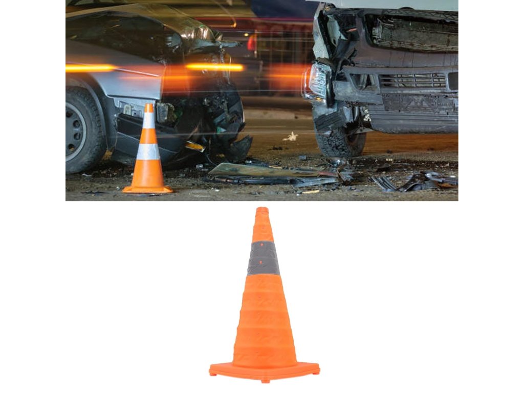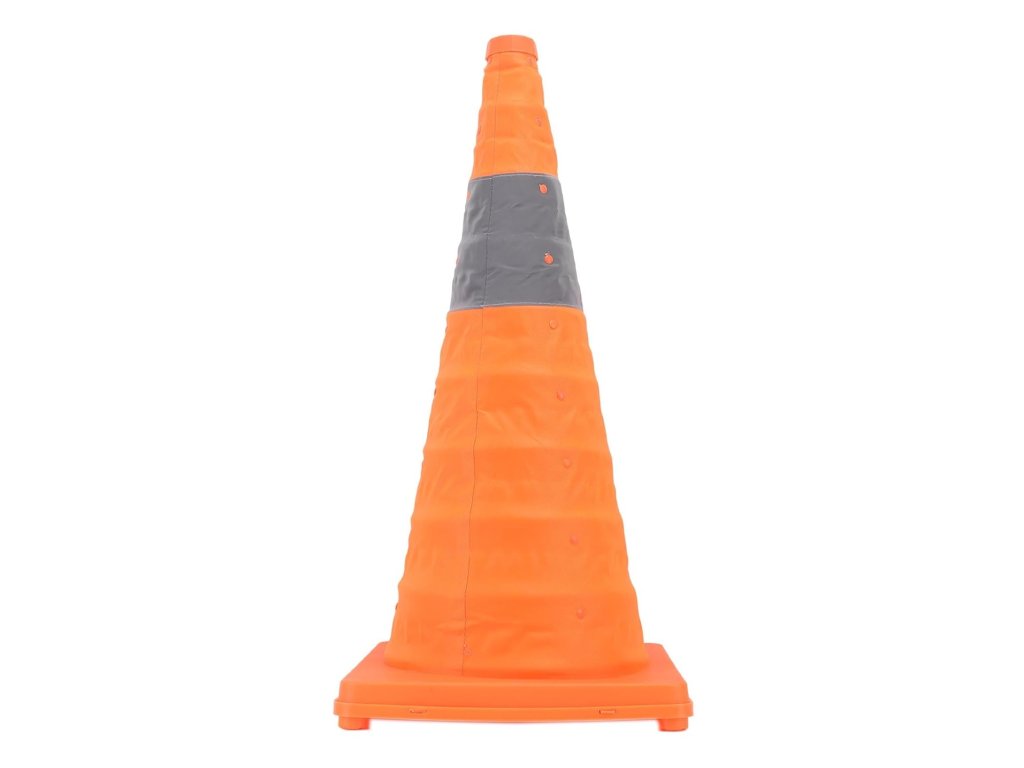Skládací dopravní kužel z nylonu vhodný pro dočasné řešení mimořádných dopravních situací.S reflexními pruhy pro vysokou viditelnost.Jednoduchý přenos.