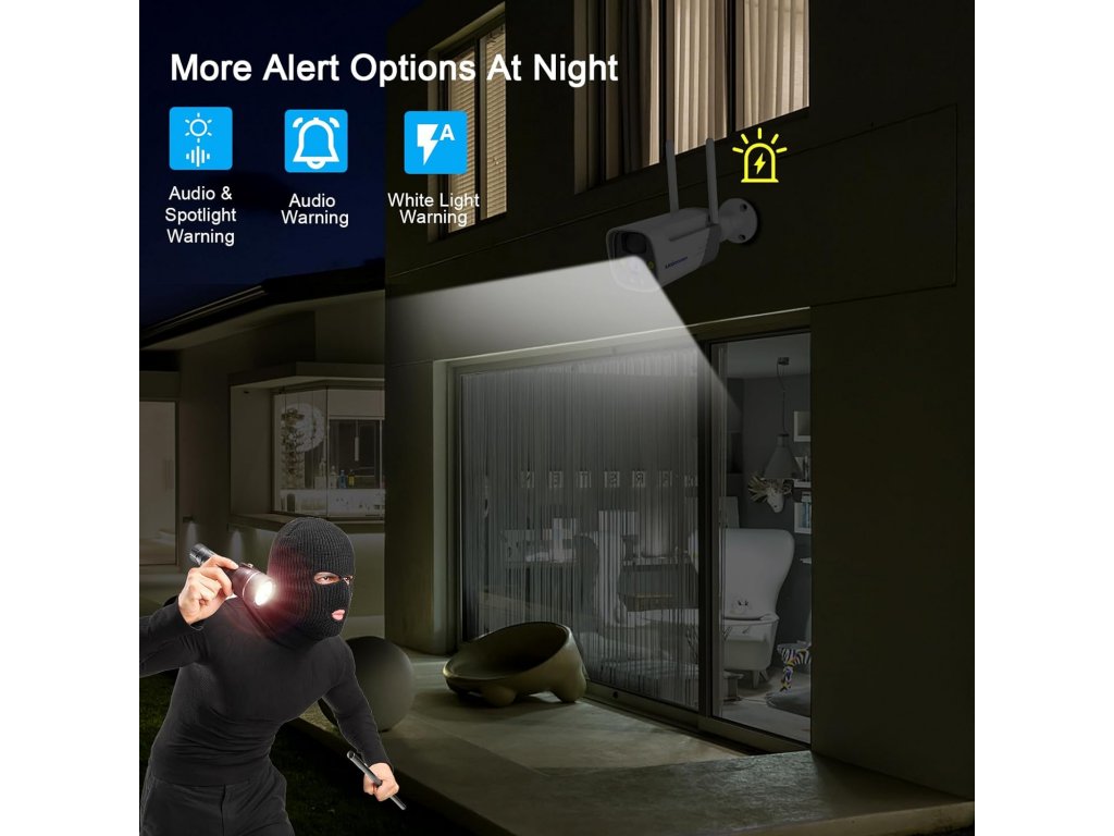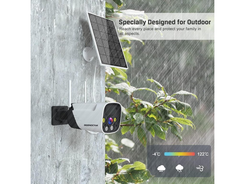 3MP 2K a 10-20m noční vidění. Zabezpečení vnějšími kamerami. Rozlišení 2K vám umožní sledování ostrých a jasných záběrů, které vám umožní vychutnat si ultra ostré detaily i při 4 násobném přiblížení. Tato venkovní bezdrátová kamera má funkci nočního vidění a dokáže zobrazit jasné zorné pole s 2K Full HD i v noci. Lze dosáhnout vzdálenosti až 20 metrů. Solární bezpečnostní kamera zaručuje dokonalý záběr každého koutu vašeho domova, obchodu, garáže. Barevné noční vidění a zpracování obrazu WDR: tato WiFi kamera má dvě bílá světla a infračervený detektor. Když zapnete barevný režim, poskytuje jasný barevný obraz v noci a odmítá černé a bílé tóny. Obraz WDR automaticky kompenzuje slabé osvětlení a potlačuje přeexponování, což má za následek měkčí a texturovanější obraz.
