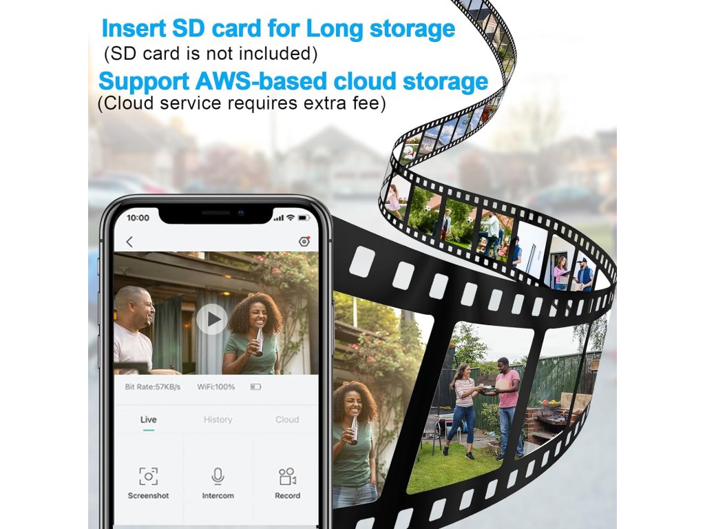 2.4 GHz Wifi připojení a SD / cloudové úložiště Bezdrátové kamery pro zabezpečení domácnosti fungují pouze v síti 2.4 GHz, 5 GHz není podporováno. K ukládání nahrávek můžete použít kartu micro SD (max. 128 GB úložné kapacity, není součástí dodávky) nebo použít doplňkovou cloudovou službu ( placená služba )