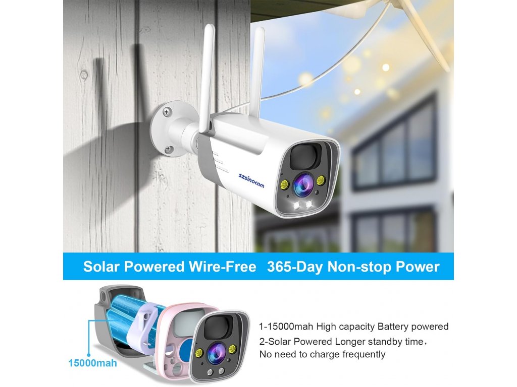 Solární napájení a IP Wifi kamera se zabudovanou baterií 15000mA. Podporuje externí nabíjení USB kabelem a napájení solárním panelem, což vám poskytuje 365denní nepřetržitou ochranu. Venkovní bezpečnostní kamera tak bude správně fungovat i v deštivých dnech. Solární panel poskytuje dostatek energie. 100% bezdrátové, žádné kabely, které byste museli tahat, ani otvory k vrtání. Zabere to jen pár minut a venkovní bezpečnostní kamery na solární pohon můžete umístit kamkoli chcete. Když se kamera vybije, upozorní vás nejprve prostřednictvím aplikace.