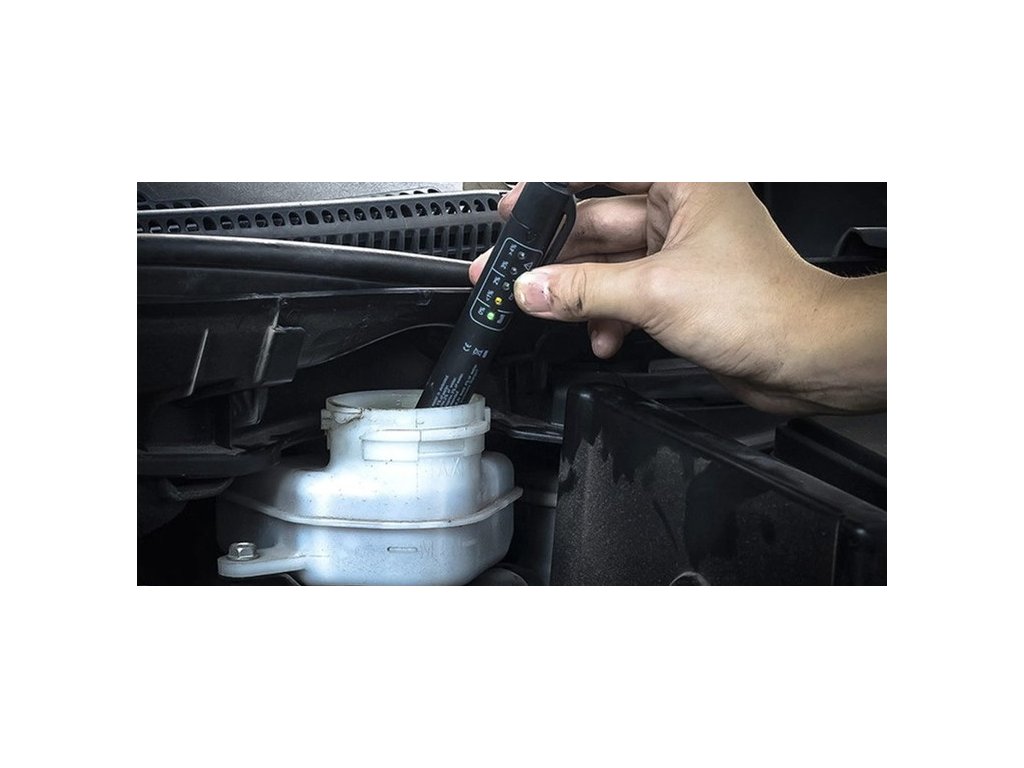 PŘESNÝ - princip činnosti testeru je založen na měření obsahu vody v brzdové kapalině. Stačí ponořit elektrody do kapaliny . Díky přesnému měření pomocí indikátorů v podobě 5 LED diod, můžete si být jisti, že získáte přesné měření hladiny vody v brzdové kapalině.