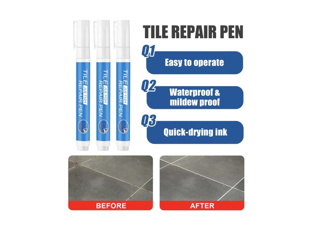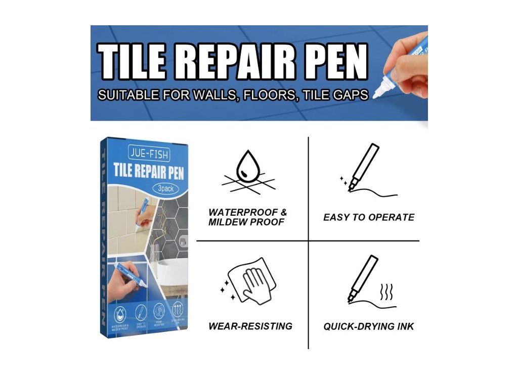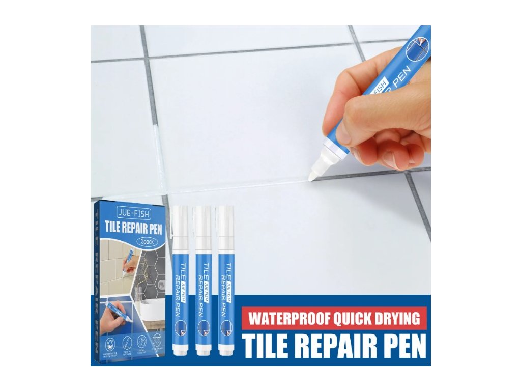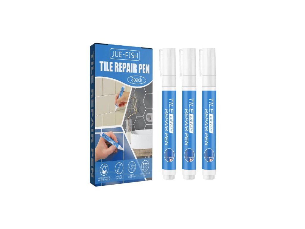 Sada opravných per JUE-FISH Tile Repair Pen je ideálním řešením pro rychlou a snadnou obnovu spár mezi dlaždicemi. Díky své jednoduché aplikaci zvládne renovaci každý, ať už v koupelně, kuchyni či jiných prostorách s obkladem.